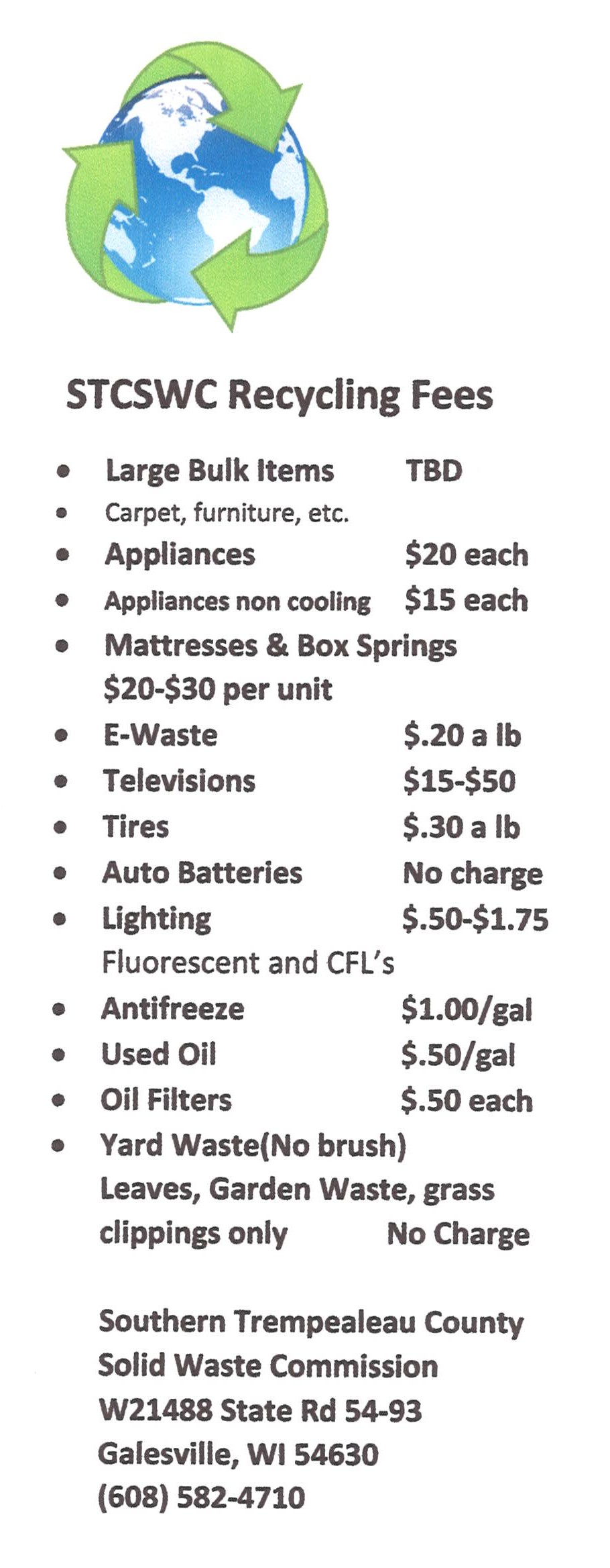 Bags may be purchased for non-recyclable trash from the recycling center or from the clerk/treasurer at the town hall. Please contact Paul Anderson at (608) 582-4710 for further information.